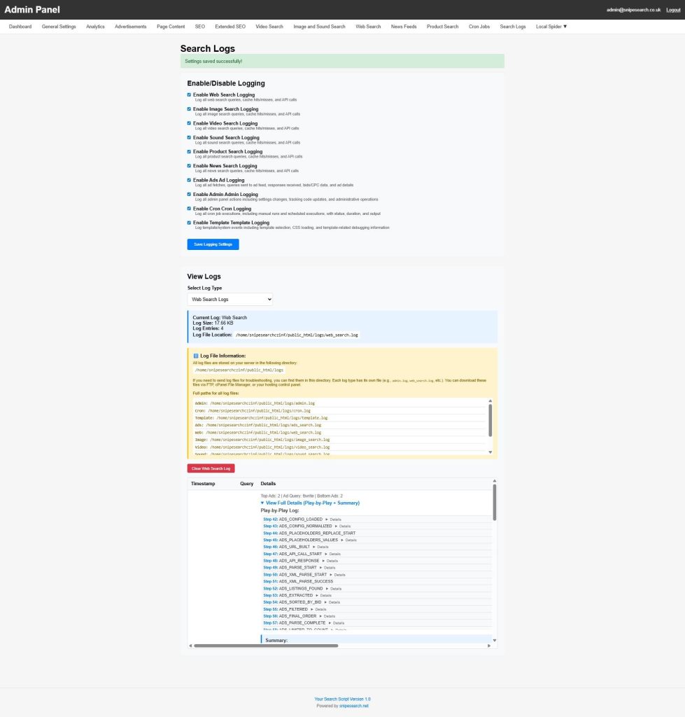 • Ads Ad Logging: The most detailed commercial log available. It tracks outbound requests to your ad feed, raw XML/JSON responses, and the exact bid/CPC data used to determine which ads “win” the top spots.